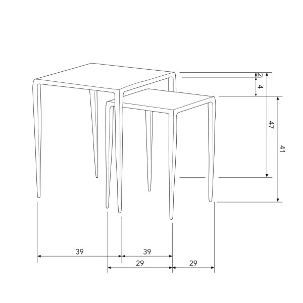 - Afmetingen kleine tafel: 41 cm hoog, 29 cm breed en 39 cm diep