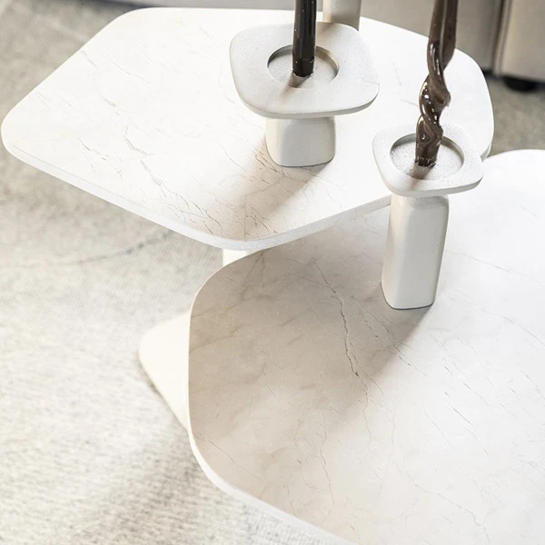 - Bijzettafel met asymmetrisch tafelblad en kolompoot