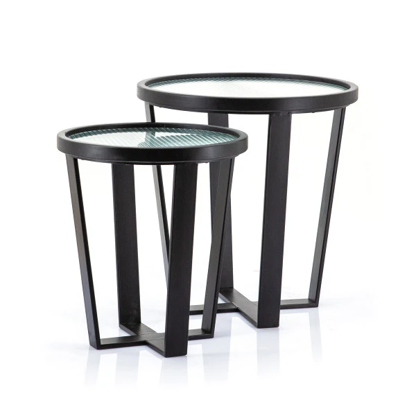 Deze By-Boo Loup bijzettafels vallen op door een uniek design en de mix van materialen: ribbelglas en metaal. Je kunt de bijzettafels op allerlei manieren gebruiken! Naast de bank, voor koffiekopjes en een leuke leeslamp. In de hoek van de woonkamer met twee groene planten erop. In de plaats van de salontafel op een mooi vloerkleed. Of zet de bijzettafels elk aan een kant van de bank!