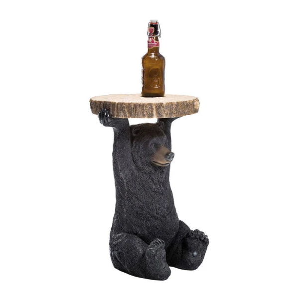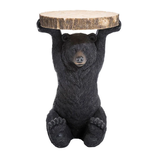 Van dit Kare Design Animal bijzettafeltje word je meteen vrolijk zodra je de woonkamer binnenkomt. De zwarte beer draagt een schijf van een boomstam boven zijn hoofd, waarop plaats is voor een set wijnglazen of een leuke plant! Het bijzettafeltje is behalve praktisch ook vooral decoratief; een leuke manier om je interieur van een persoonlijk accent te voorzien.
