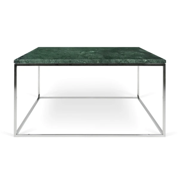 Deze groene TemaHome Gleam Marble salontafel van marmer is stoer en chique tegelijk. Zeker de variant met het zwart metalen onderstel heeft een stoer karakter; bij de salontafel met verchroomde poten wordt het chique element extra benadrukt! Welke salontafel vind jij het mooiste? Met een vierkant blad van 75 cm breed is de tafel heerlijk compact en toch een echte sfeermaker in je interieur.