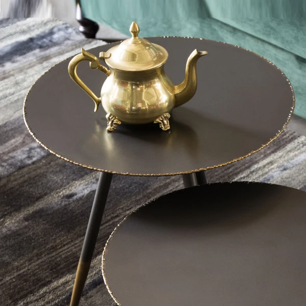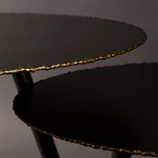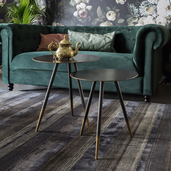 Deze Dutchbone Stalwart bijzettafelset neemt graag de plaats van je salontafel in: op een gezellig vloerkleed vormt de bijzettafelset een sfeervolle aanwinst! Het ijzeren blad is rond met een gelaste, goudkleurige rand. Drie goudkleurige voetjes maken de look compleet. De bijzettafelset past dankzij het slanke design en het gebruik van ijzer in verschillende woonstijlen, van bohémien tot industrieel.
