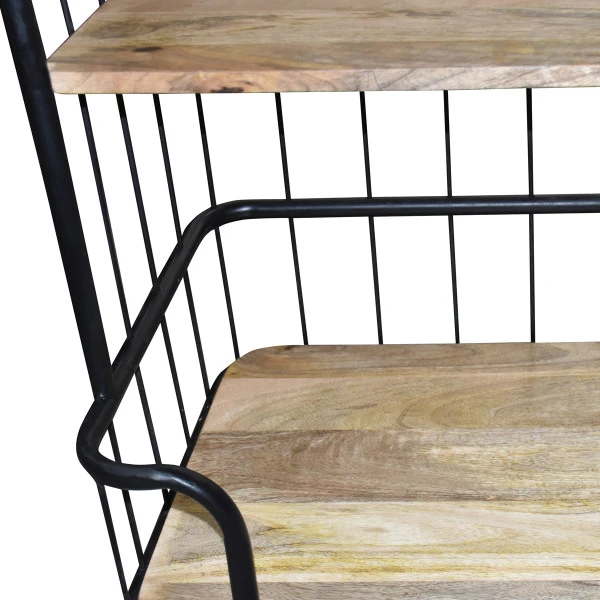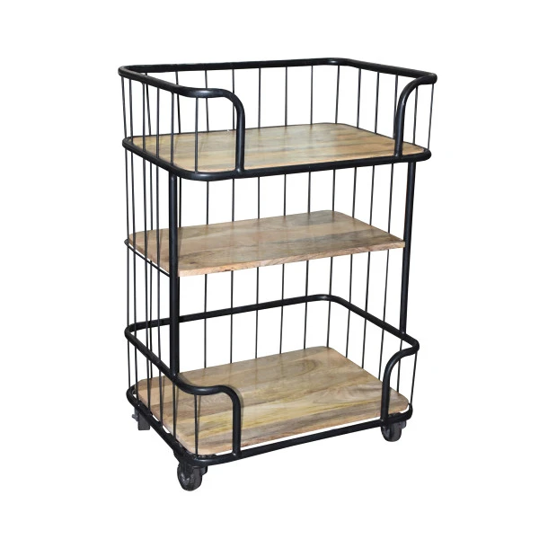Deze industriële trolley van metaal geeft je een originele manier om je borden, pannen en keukengereedschap te bewaren. Of vul de trolley met weckpotten vol pasta, linzen, rijst, suiker en thee: voor een gezellig effect! De mix van metaal en mangohout geeft de trolley een industriële look. Behalve in de keuken kun je de trolley natuurlijk ook in de woonkamer gebruiken voor glazen, boeken en decoraties.