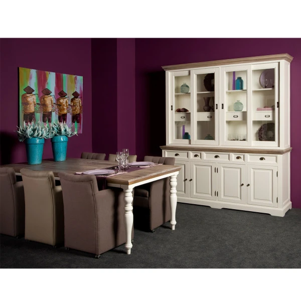 Met de Tower Living Fleur serie creëer je een landelijke sfeer met een romantische touch. Kenmerkend voor de serie is de witte basis en de accenten van vergrijsd hout. Kijk gauw verder in de serie voor een echte landelijke buffetkast en een dressoir dat perfect bij deze eettafel past!
