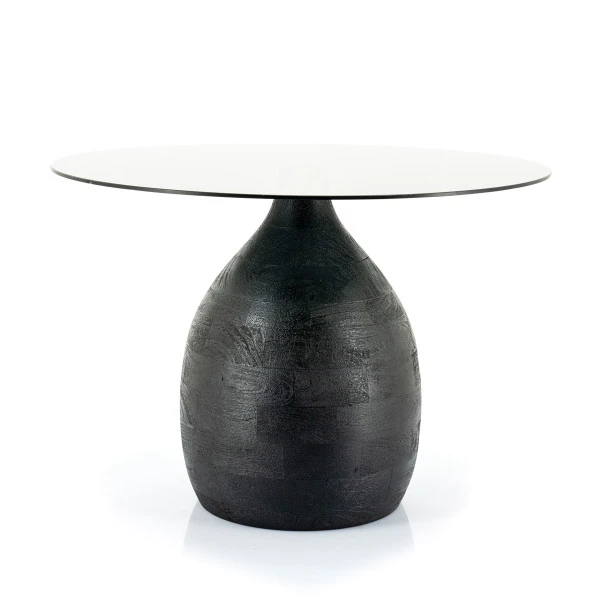 De By-Boo Bond salontafel bestaat uit een bijzondere mix van materialen. De mangohouten kegelvoet is sfeervol, natuurlijk en karakteristiek. Daarboven zorgt het blad van glas voor veel contrast. Met een diameter van 60 centimeter kun je er genoeg koffiekopjes, wijnglazen of lekkernijen op kwijt; dankzij het glas neemt de salontafel toch een bescheiden ruimte in! Verkrijgbaar in donkerbruin of zwart.