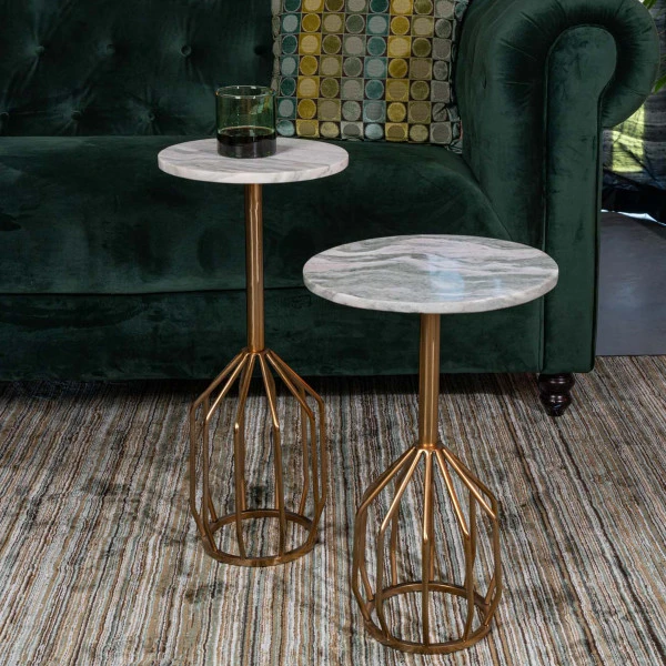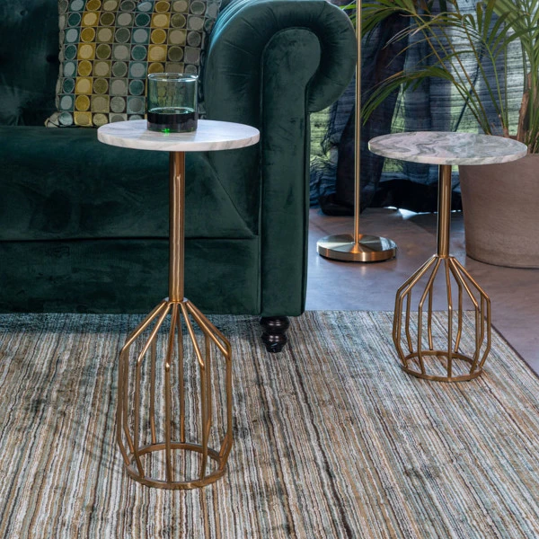 Bij de Dutchbone Salerno bijzettafel heb je keuze uit twee formaten: met een diameter van 25 of 30 centimeter. Combineer de twee formaten voor een speels effect in je zithoek! Of zet één bijzettafel van wit marmer en messing naast je favoriete fauteuil, en de andere naast de bank. Mooi in een retro of design interieur met extravagante details.