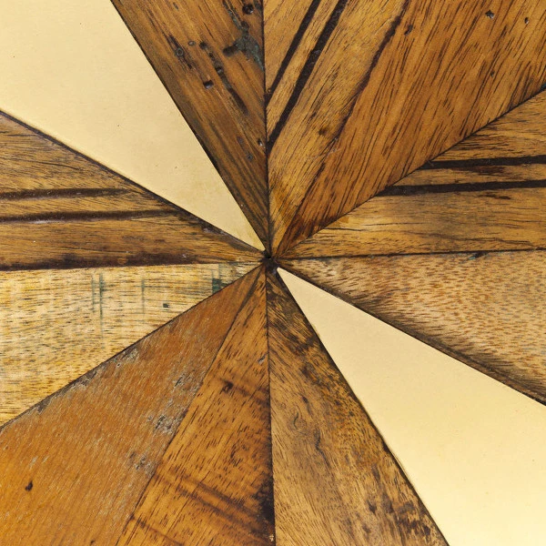 - Tafelblad van acaciahout mozaiek met messing inleg