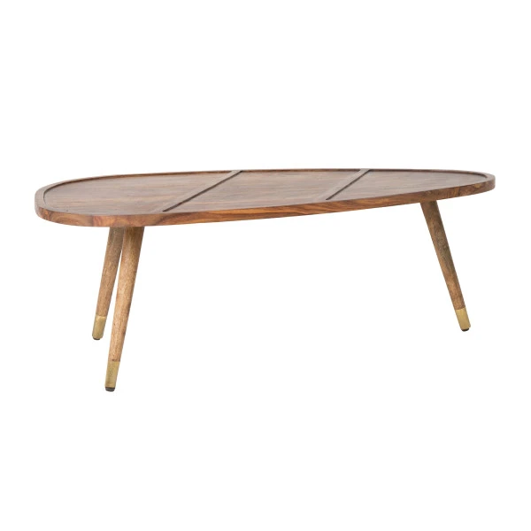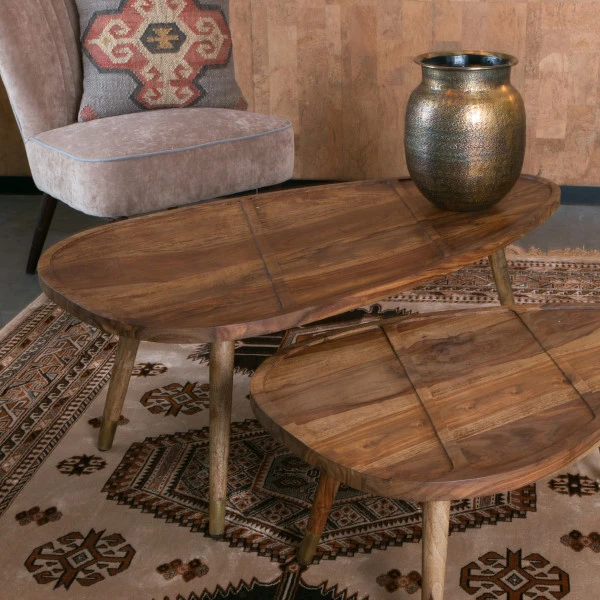 Met de Dutchbone Sham koffietafelset ziet je zithoek er meteen een stuk gezelliger uit. Het blad van sheesham heeft een warme tint; messing voetjes aan de poten geven de houten tafels een chique uitstraling! Dwarslatjes in het sheesham blad zorgen bovendien voor een speels effect bij deze sfeervolle koffietafelset.