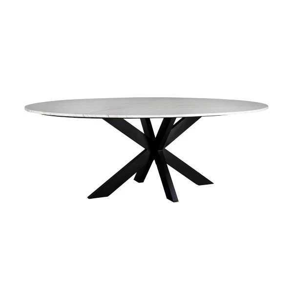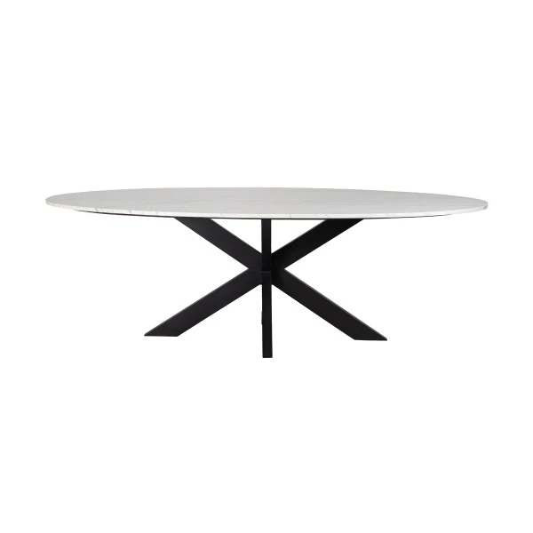 Het design van deze Richmond Interiors Lexington eettafel is bijzonder contrastrijk. Een elegant blad van wit marmer op stoere poten van zwart metaal: modern industrieel met een vleugje chique! Schuif een stel luxe eetkamerstoelen aan het ovale blad van 230 centimeter en geniet met vrienden of familie van een gezellig diner.