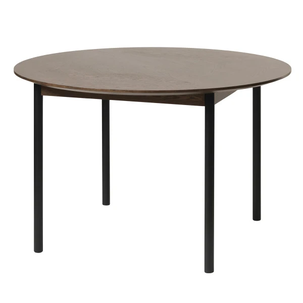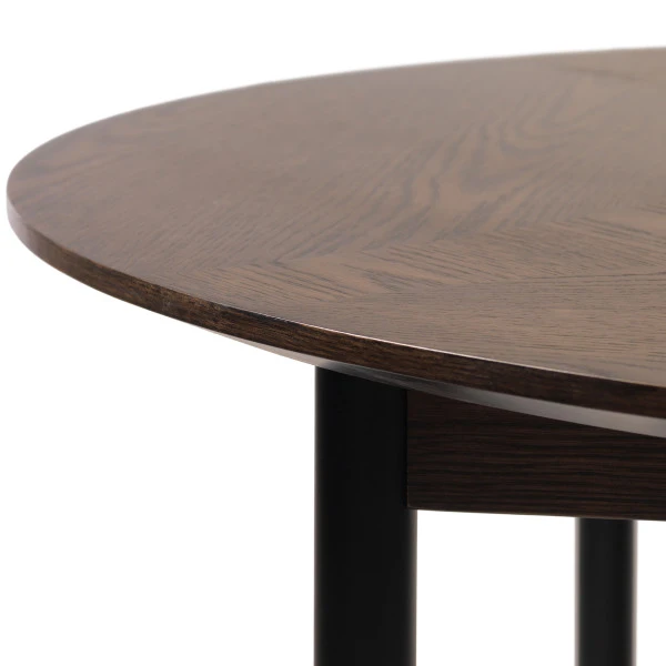Deze ronde eettafel van donkerbruin eikenfineer heeft een klassiek design met een vintage sfeertje, dankzij de warme espresso kleur. Met een diameter van 120 centimeter biedt de eettafel ruimte voor vier stoelen; maar op een spelletjesavond kun je er best nog twee bijschuiven!