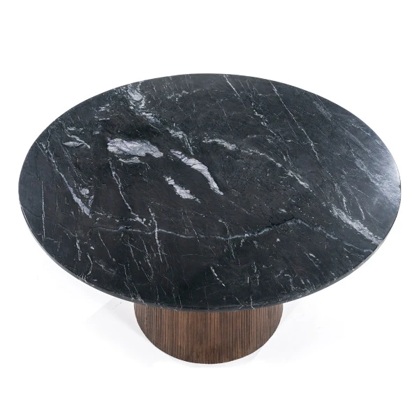 - Rond tafelblad van echt zwart marmer met witte accenten