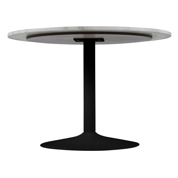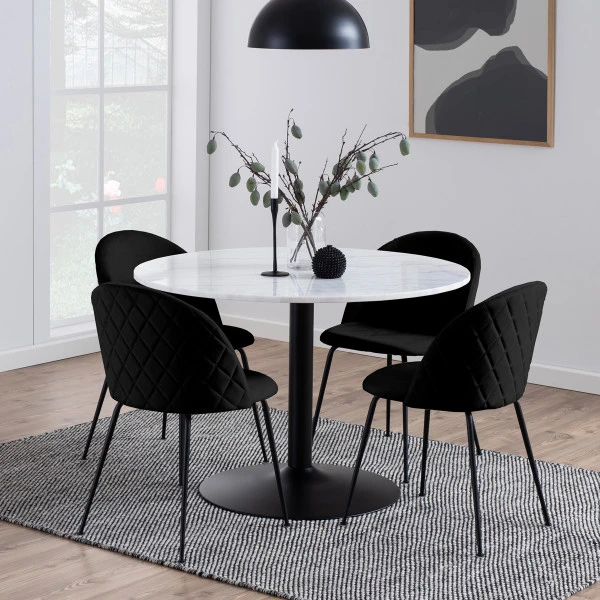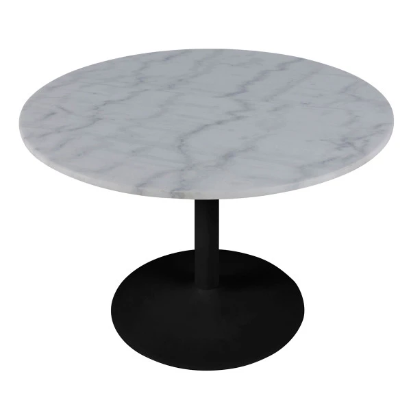 Omdat de ronde eettafel gemaakt is van marmer heeft elke tafel een uniek karakter. De patronen en kleuren in het blad van wit marmer verschillen per tafel! Met een diameter van 110 centimeter biedt de eettafel plaats aan 4 personen, al kun je er tijdens een gezellige spelletjesavond nog wel een extra stoel bij zetten.