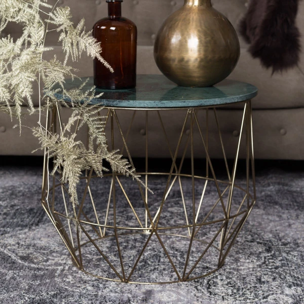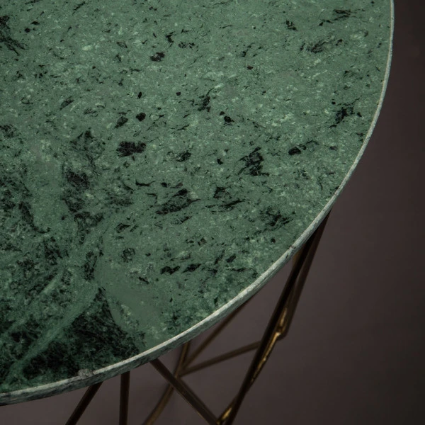 Deze Dutchbone Boss bijzettafel heeft het allemaal: een chique uitstraling, veel sfeer en een origineel design. Het groen marmeren blad zit boordevol kleurvariaties en details. Omdat marmer een natuurproduct is heeft elke bijzettafel een uniek karakter! Onder het ronde blad zorgen geometrische lijnen van bronskleurig draadstaal voor een speels contrast.