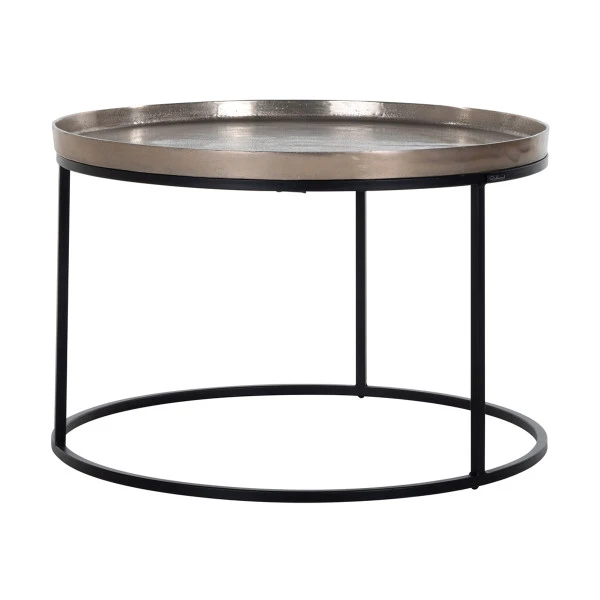 De Richmond Interiors Milo salontafel past prachtig in een modern- industriële woonstijl. Het design is robuust en toch slank, de materialen zijn stoer en toch chique. Daarbij heb je keuze uit een aluminium salontafel met een Champagne Gold toplaag of een zilveren finish. Dankzij de schaal met opstaande rand staan je glazen en koffiekopjes veilig op deze ronde salontafel!