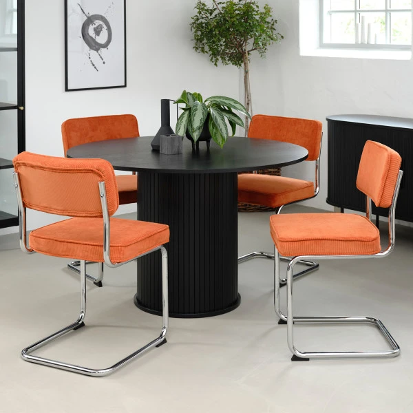 Het fijne van een ronde tafel is dat elke maaltijd en elk spelletje al snel gezellig wordt. Een ronde eettafel stimuleert immers een open houding: de basis voor goede gesprekken en plezier! Deze ronde tafel is volledig gemaakt van eiken in stijlvol zwart. Met een diameter van 120 centimeter biedt de ronde eettafel plaats aan vier personen, maar op een spelletjesavond schuif je er zo nog een vijfde en zesde stoel aan.