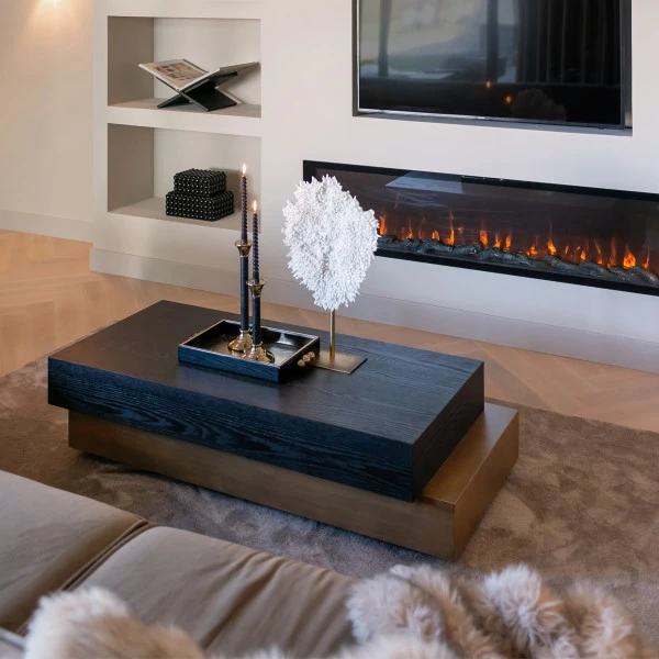 - Het onderste blok is van metaal en is afgewerkt in een gouden kleur