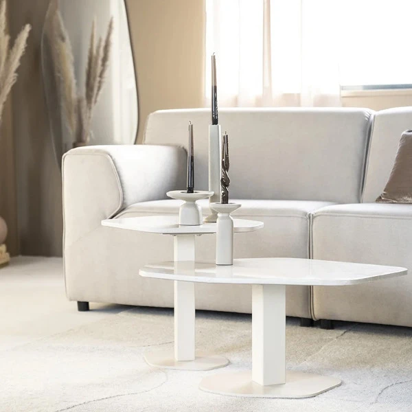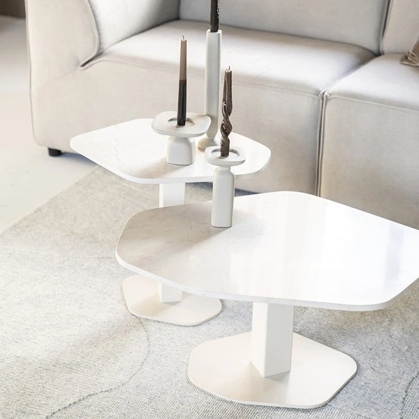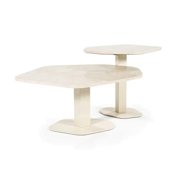 - Salontafel met asymmetrisch tafelblad en kolompoot