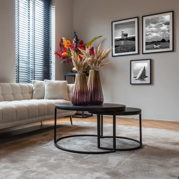De Richmond Interiors Catana salontafelset is stoer en stijlvol. De robuuste materialen geven het moderne design een stoer tintje. Schuif de kleine tafel half onder de grote voor een speels effect in de zithoek. Zo kun je de salontafelset gebruiken voor koffiekopjes én een gezellige decoratie. Mooi aan het blad van zwart mangohout is dat je de karakteristieke lijnen van het hout niet alleen kunt zien maar ook voelen.