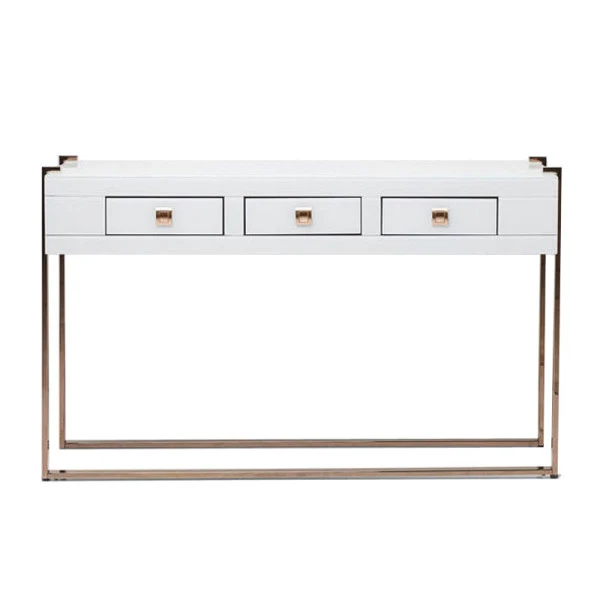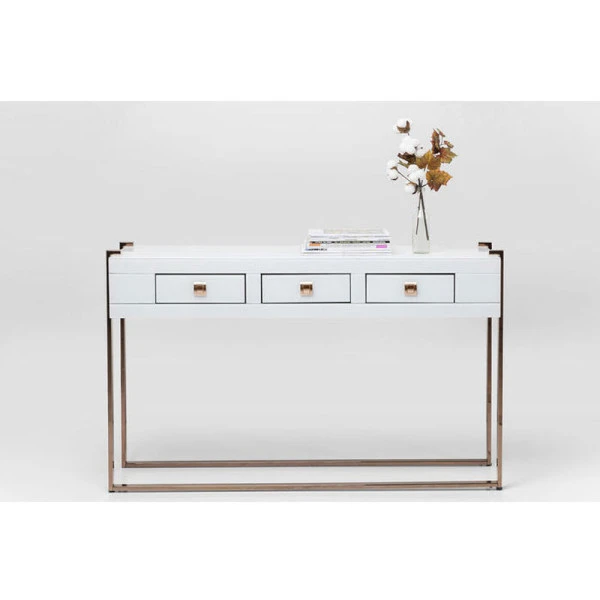 Deze Kare Design Elite sidetable geeft je hal in één klap stijl. De tafel is bedekt met gekleurd glas, terwijl details van goud voor een chique geheel zorgen. Gebruik de 3 lades voor sleutels, portemonnees of post en zet een mooie vaas bloemen op het bovenblad! De sidetable steekt slechts 40 centimeter diep zodat je er nog prima langs kunt lopen in de hal. Ook mooi in de woonkamer.