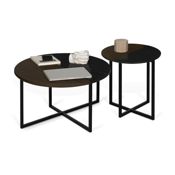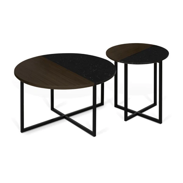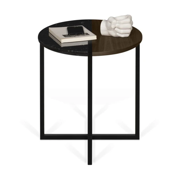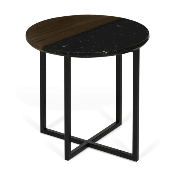 Het TemaHome Sonata tafeltje vormt een bijzonder element in je zithoek. Eén helft van het blad heeft een warme walnoot look; de andere helft bestaat uit zwart Marquina marmer! In combinatie met een vierkant buisframe van metaal zorgen het walnoot en marmer voor een stoer, sfeervol geheel. Je hebt keuze uit twee formaten van dit tafeltje: met een diameter van 50 of 80 centimeter.