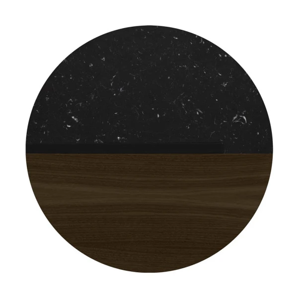 - Tafelblad van donker eikenfineer en zwart Marquina marmer