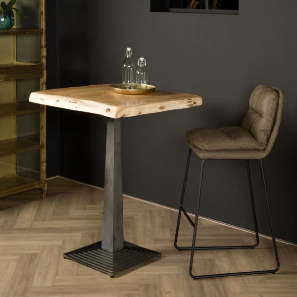 De Tower Living Bistro bartafel is een compacte maar efficiënte sfeermaker. Met een formaat van 80 bij 80 cm neemt de vierkante bartafel weinig plaats in; maar het boomstam blad brengt des te meer sfeer. Het robuuste onderstel van metaal zorgt voor een stoer geheel. Schuif een industriële barstoel aan van metaal en leer of combineer de bartafel juist met een houten kruk!