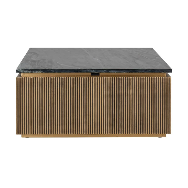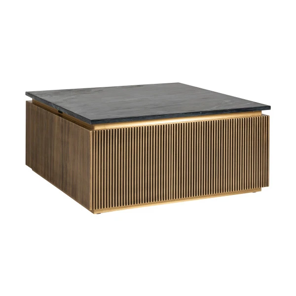 De meubels uit de Richmond Interiors Ironville serie vallen op dankzij de gouden gloed; die komt van de metaalplaten met ribbelmotief. Tegelijkertijd zorgt een blad van echt marmer voor stijl en karakter. Kijk gauw verder voor een bijpassende bijzettafel van goud met marmer! Of combineer de vierkante salontafel met een dressoir uit de serie.