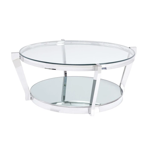 De zilveren Kare Design Monocolo Silver salontafel is één en al stijl. Een rond frame van gepolijst RVS zorgt voor een extravagante look; maar ook het onderste blad van spiegelglas draagt bij aan de luxe uitstraling van de salontafel. Op het bovenste blad van transparant glas is ruim plaats voor een mooie decoratie naast je wijnglazen of koffiekopjes.