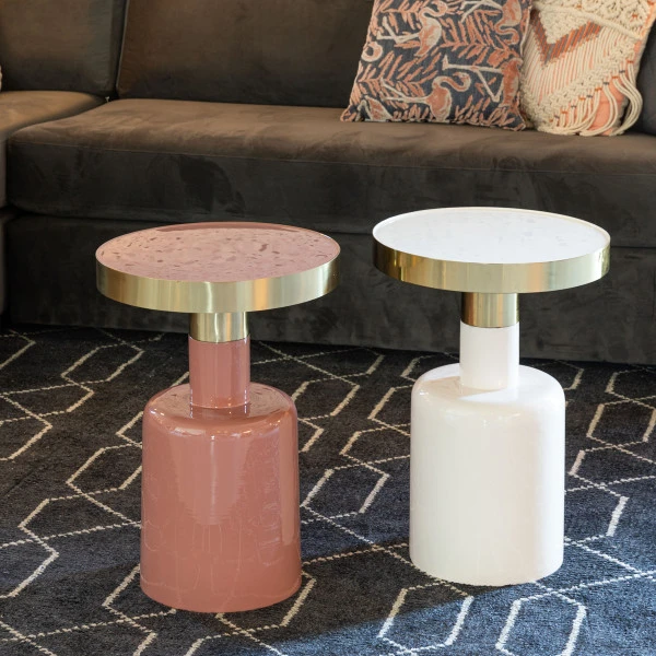 Bij de Zuiver Glam bijzettafel heb je keuze uit verschillende kleuren: blauw, groen, roze, wit of zwart. Kies je favoriet of combineer twee kleuren in de zithoek voor een gezellig effect! Je kunt de emaille bijzettafel naast de bank zetten, of in de hoek van de woonkamer naast een chique fauteuil. Maar ook als decoratiemeubel doet de bijzettafel het goed!