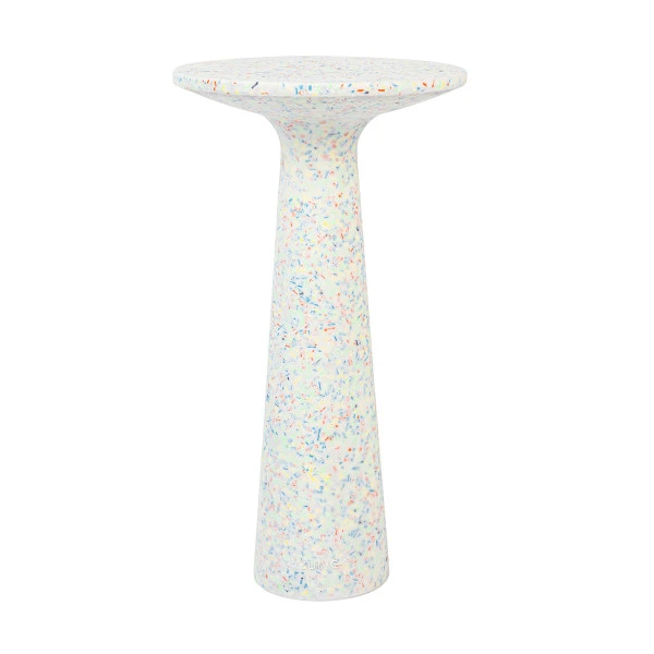 Deze Zuiver Victoria bijzettafel kun je zowel binnen als buiten gebruiken! Zet de bijzettafel naast een heerlijke loungebank in de tuin of combineer met een ligbed. Binnenshuis staat de terrazzo bijzettafel leuk in de zithoek of naast je favoriete fauteuil. Het gerecycled plastic terrazzo heeft talloze kleurtjes maar is overwegend wit, en past daardoor bij verschillende kleuren meubels.