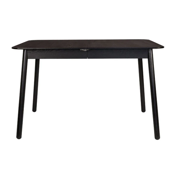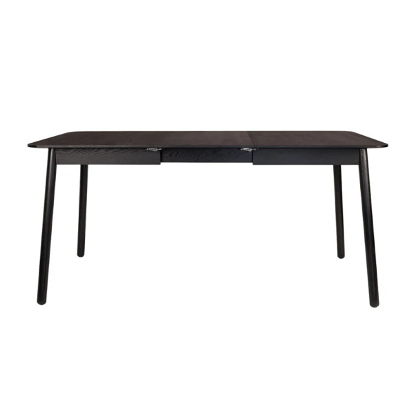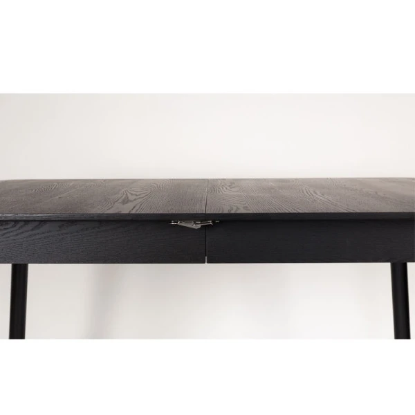 De verstelbare Zuiver Glimps eettafel tover je in een handomdraai om tot een decor voor etentjes met vrienden! Met een breedte van 120 tot 162 centimeter beschik je tegelijkertijd over de compacte en de luxe variant van deze eettafel. Het zwart geverfd hout gaat samen met elke kleur muur en vloer. Ook bijpassende stoelen zijn niet moeilijk te vinden!