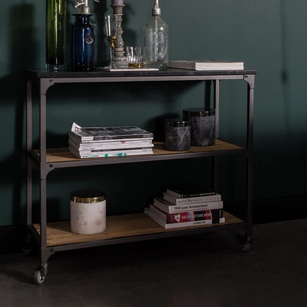 Bijzonder aan de Dutchbone Consuela trolley is het zwart marmeren blad. Marmer is een natuurproduct, zodat elke trolley anders is met kleurvariaties en details! De combinatie met hout en ijzer geeft de trolley ook een stoer karakter. Leuk in moderne en industriële woonruimtes.