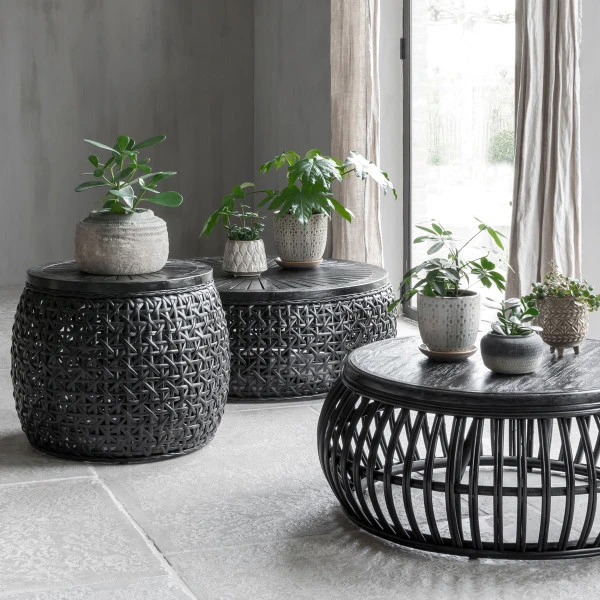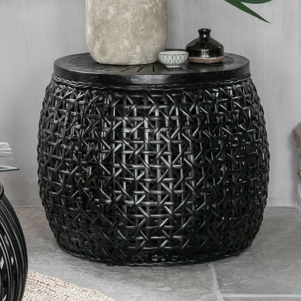- Handgemaakt van zwart gelakt rotan